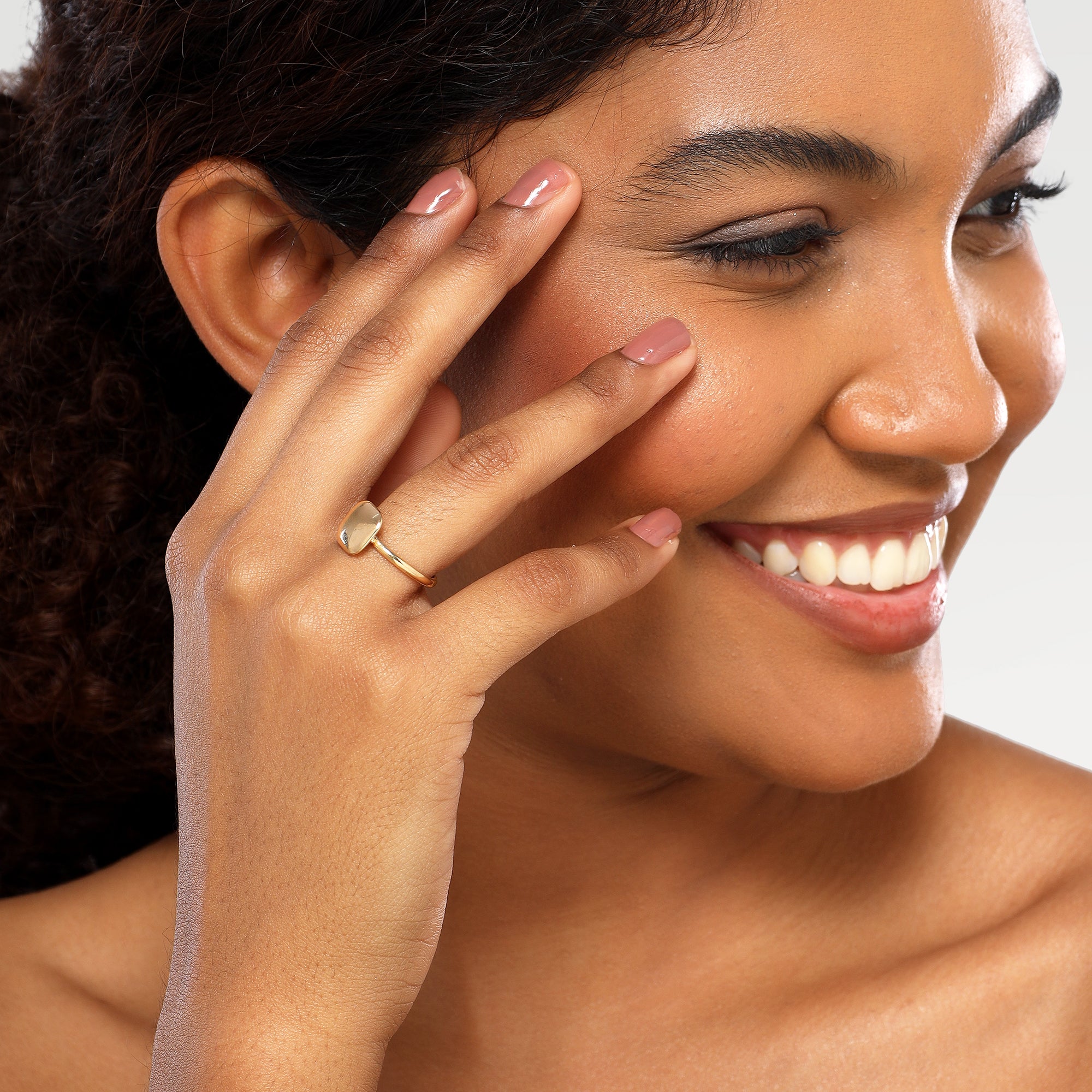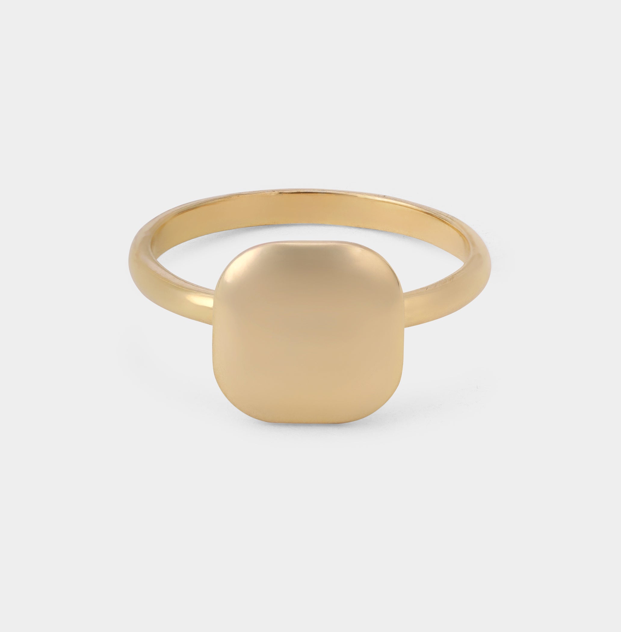The Emma Yellow Gold Plated Cushion Shape Ring is crafted from brass with a 0.50 micron yellow gold plating, delivering a durable and radiant finish. Weighing 2.36 grams, its cushion shape offers a refined and contemporary silhouette, making it a versatile accessory for both everyday wear and special occasions.
