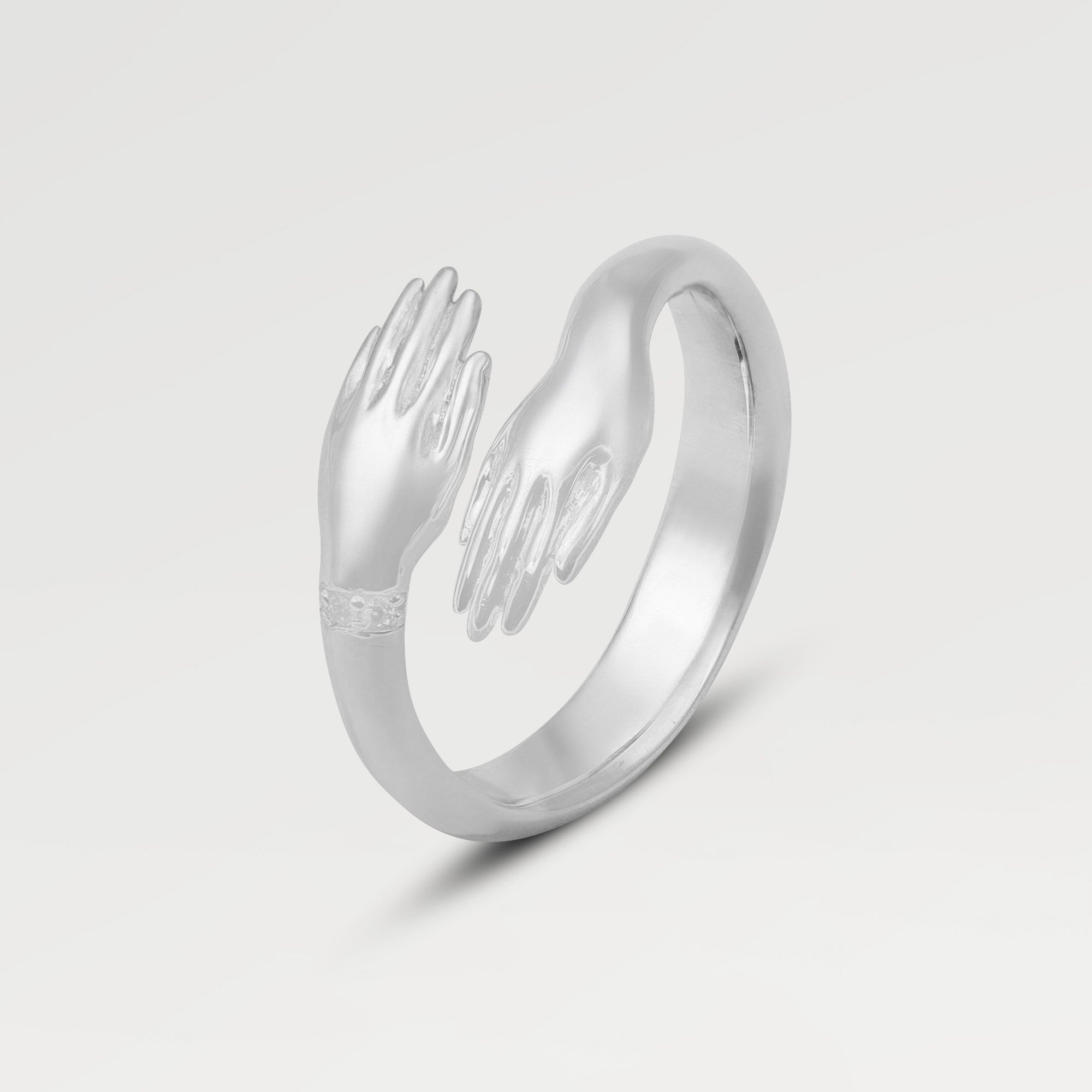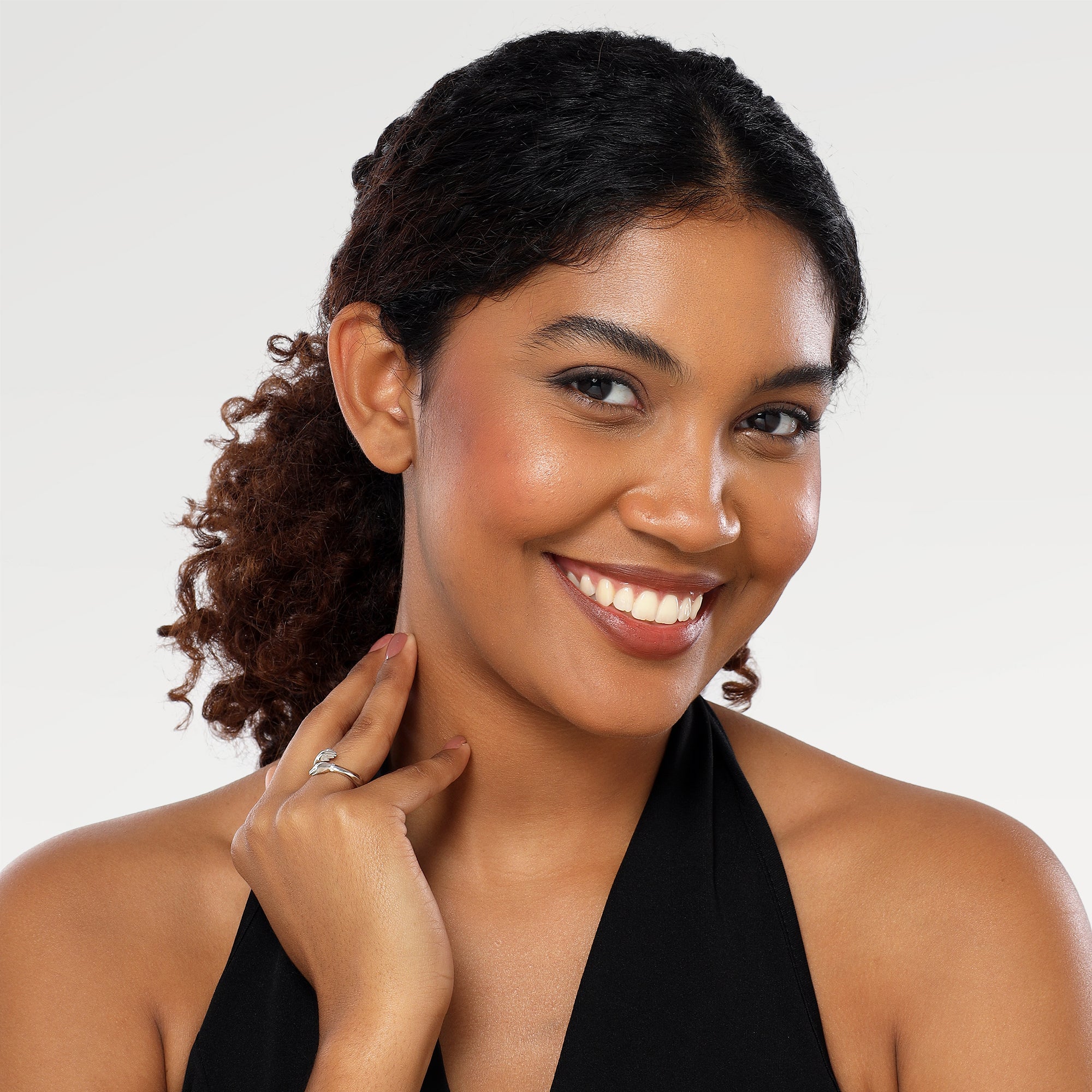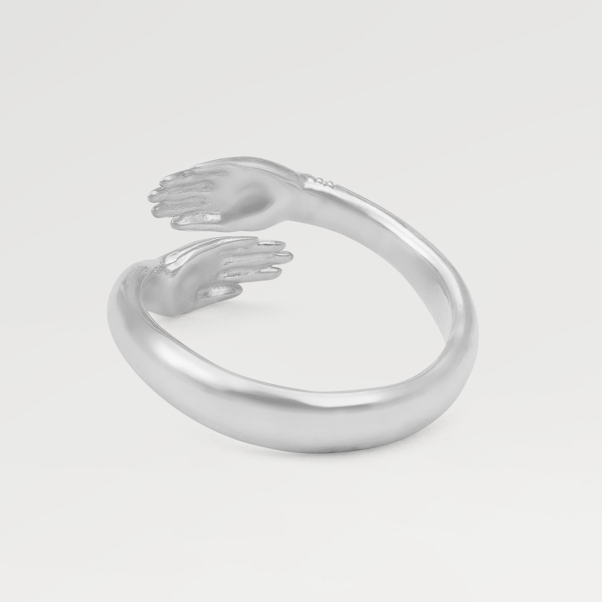 The Grace Silver Plated Pave Open Hand Ring features a modern open-hand design adorned with pave-set round white cubic zirconia, crafted from 925 sterling silver with a silver plating for a polished finish. Weighing 3.50 grams, this expertly crafted ring offers a blend of contemporary style and subtle sparkle, perfect for elevating any look with refined elegance.