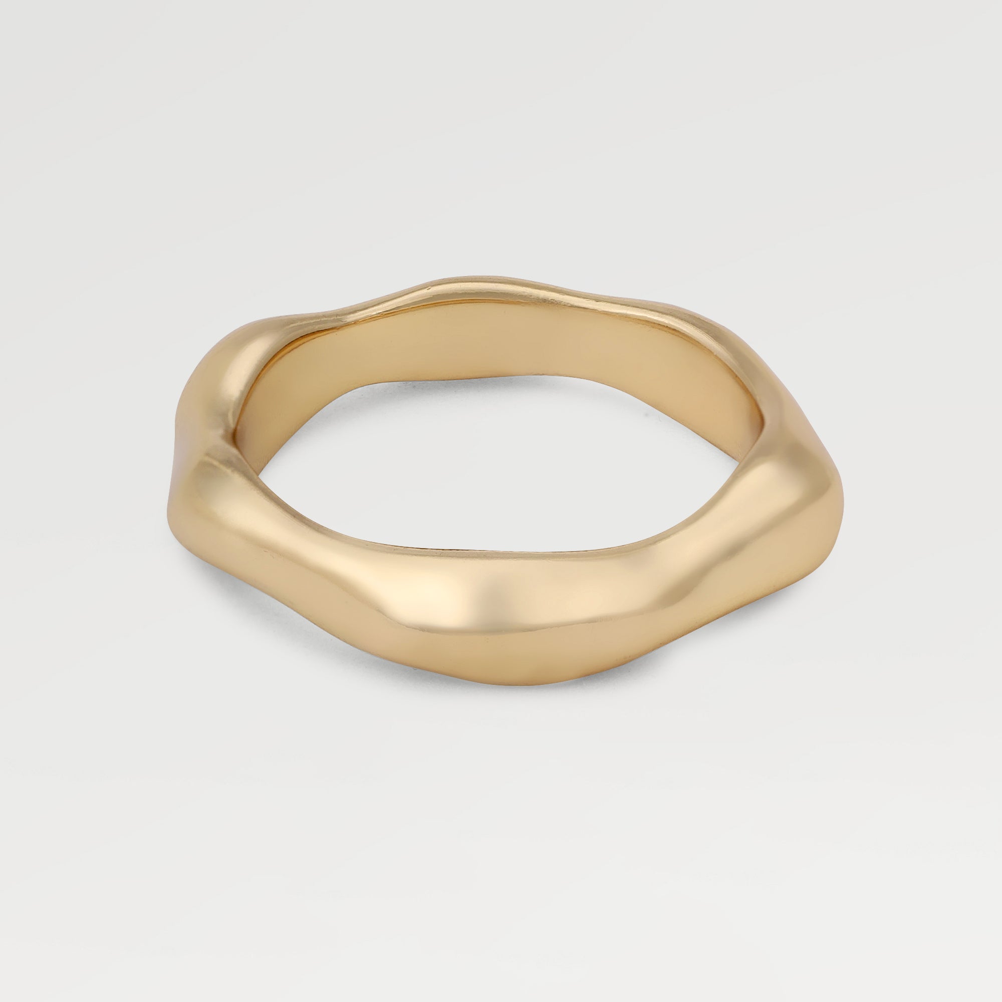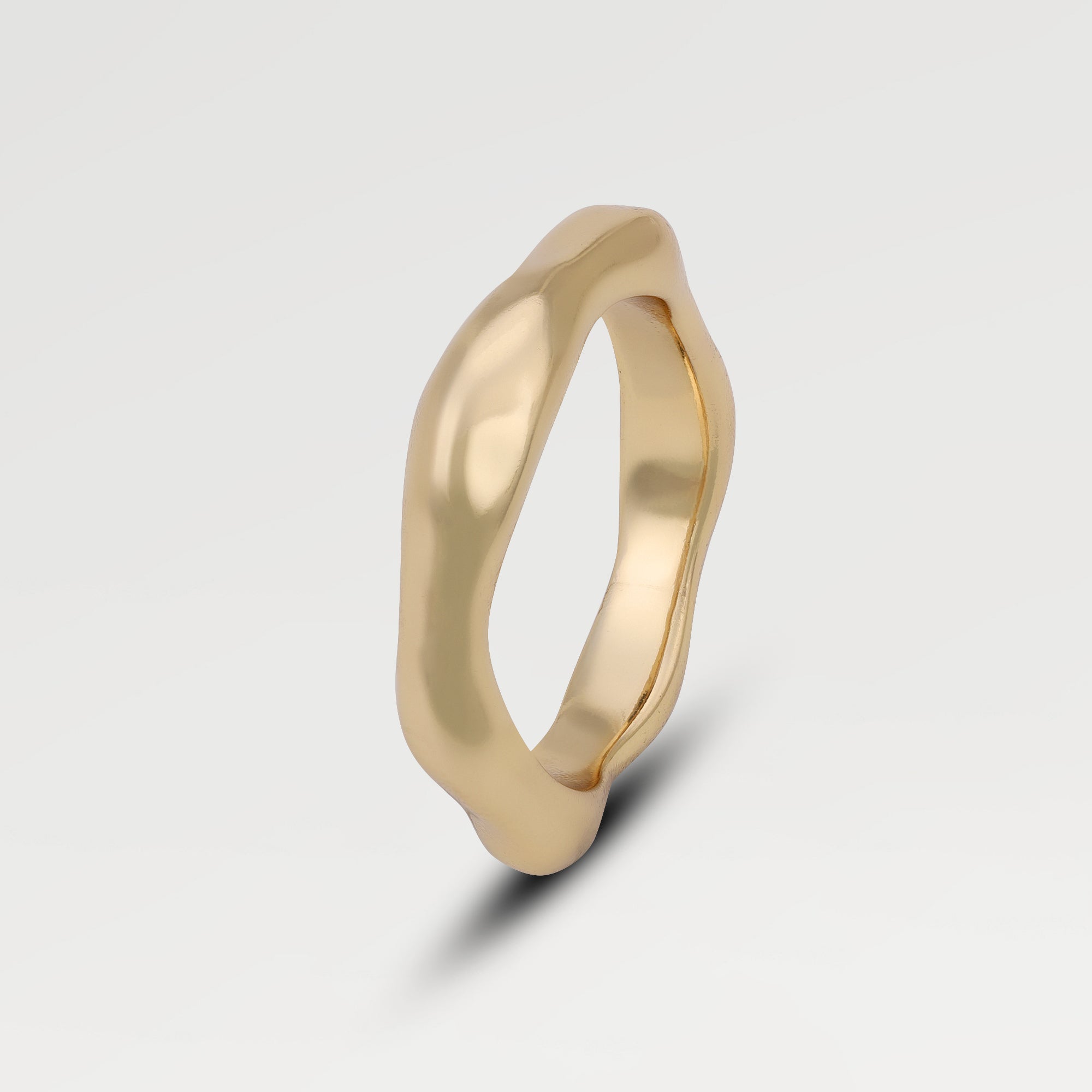 The Lily Yellow Gold Plated Plain Organic Ring is crafted from brass with a 3 micron yellow gold plating. Weighing 3.75 grams, this ring features a smooth, organic shape that offers a refined and contemporary aesthetic, perfect for adding subtle elegance to any look.