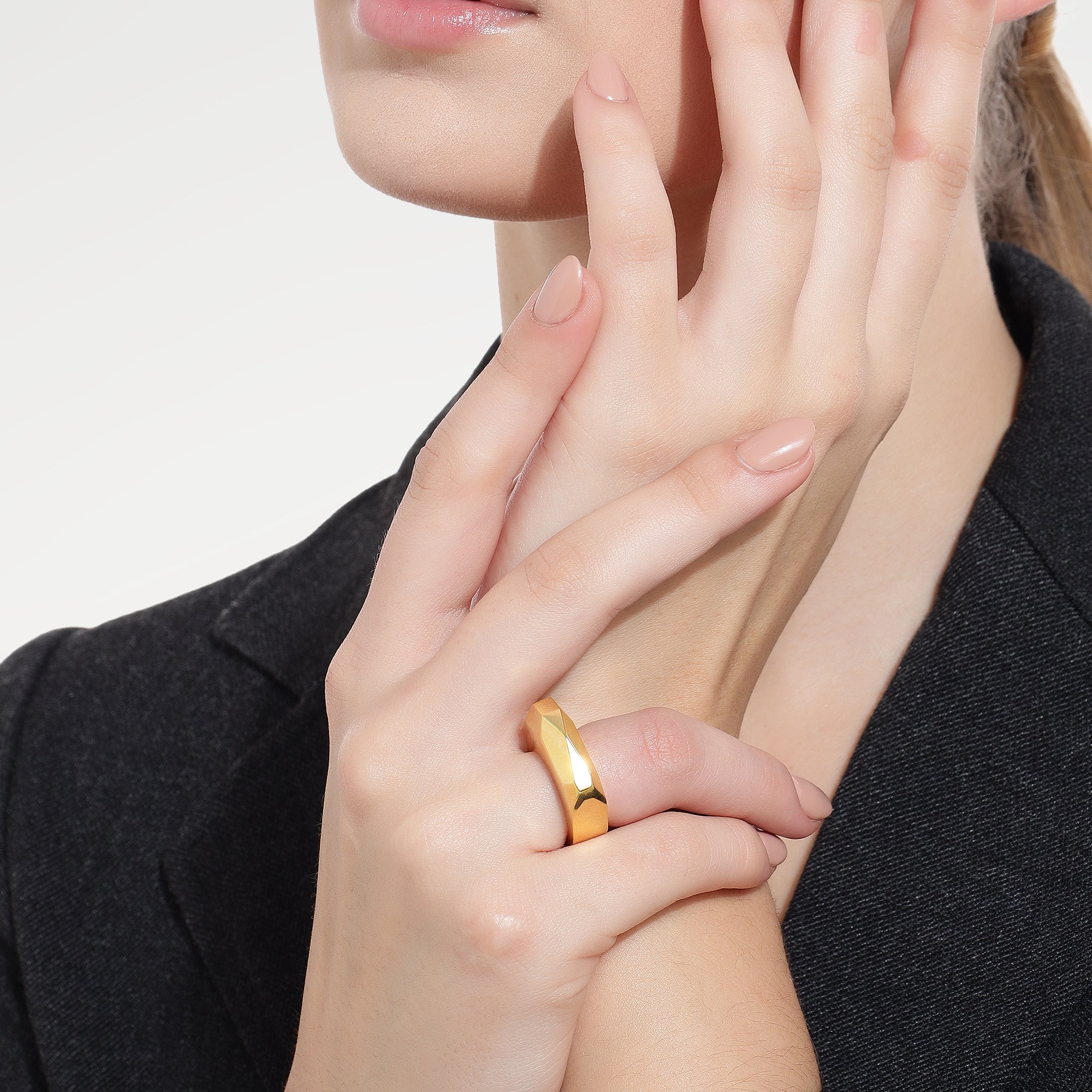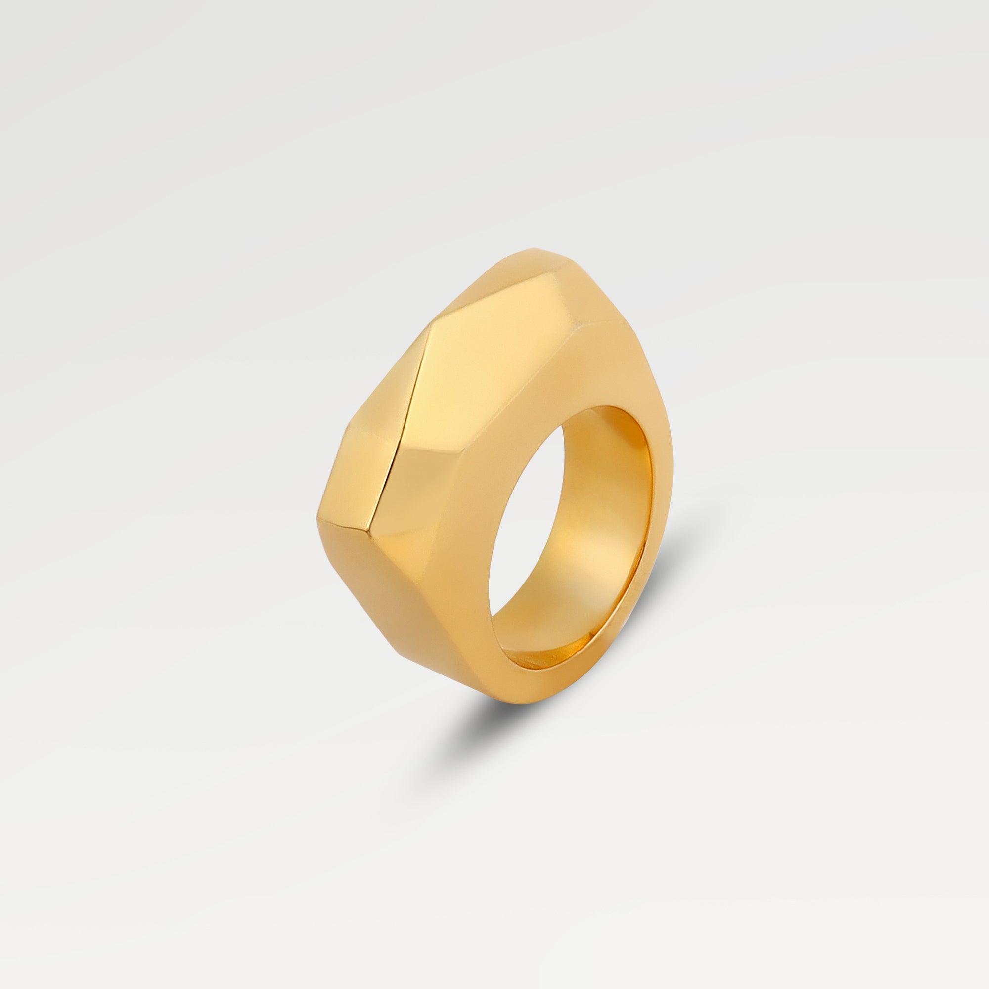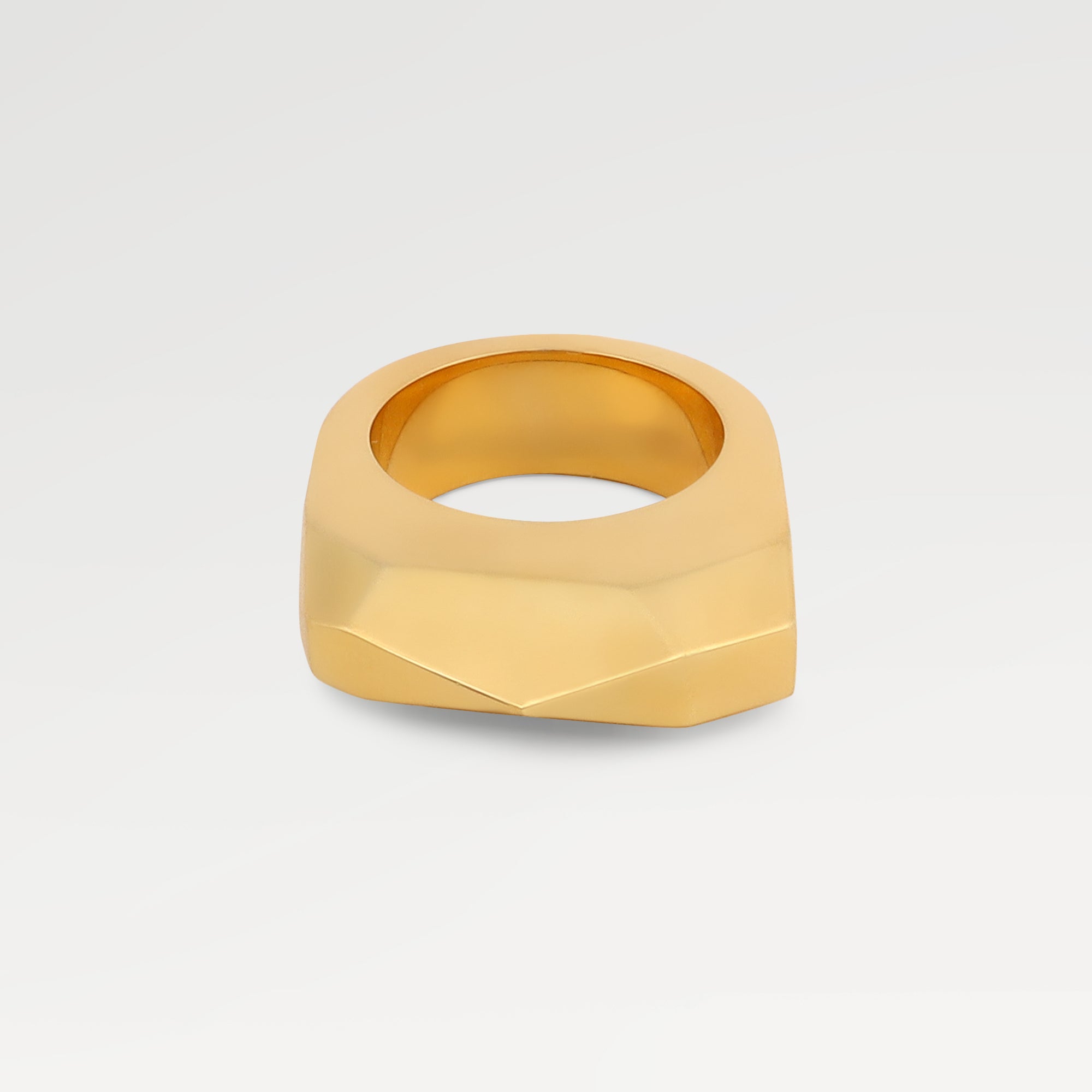 The Zoe Gold Plated Plain Cut Tumble Ring is crafted from durable brass with a fine 0.10-micron gold plating, offering a sophisticated yet understated look. Weighing 18.28 grams, its solid construction delivers a comfortable feel while maintaining a timeless appeal. This ring is an expert choice for those seeking a versatile accessory that combines classic style with lasting quality.