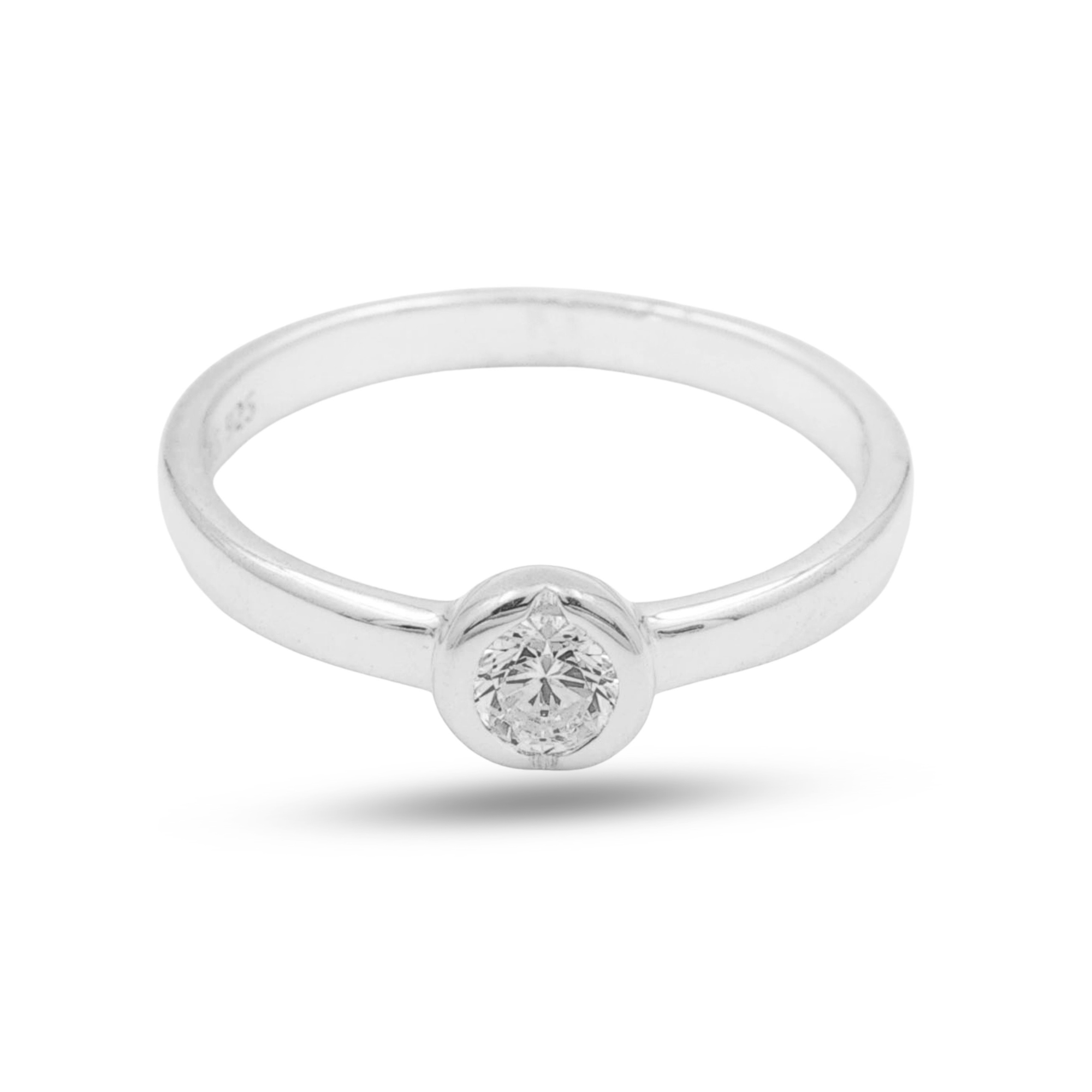 Discover understated luxury with the Ana ring, featuring a 0.23-carat lab-grown diamond set in a protective bezel of 925 sterling silver with silver plating. The bezel design secures the stone while creating a modern, streamlined silhouette that complements any style. Weighing just 1.97 grams, the ring offers substantial visual impact without heaviness. Graded FG in color and VVS1/VS1 in clarity, the diamond exhibits brilliant sparkle and exceptional purity. This ethically sourced piece combines timeless elegance with contemporary design, delivering superior value and lasting durability for the discerning wearer.