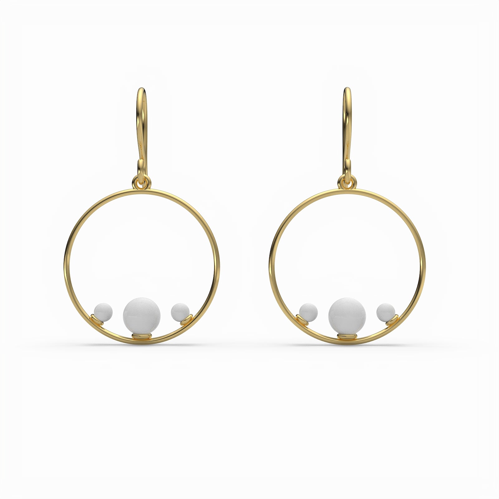 The Lily earrings blend 925 sterling silver with a lustrous 0.25 micron gold plating for timeless appeal. Featuring half-drill synthetic pearls in graduated sizes—5mm and 2.5mm—these pieces create an elegant layered effect with visual depth. Weighing merely 1.73 grams, they offer exceptional lightness without sacrificing presence, making them ideal for sensitive ears or extended wear. The synthetic pearls are uniformly crafted to maintain consistent brilliance and resist discoloration. This thoughtfully designed piece bridges contemporary minimalism with classic pearl elegance, offering versatile styling potential for both everyday occasions and special moments where refined simplicity speaks volumes.