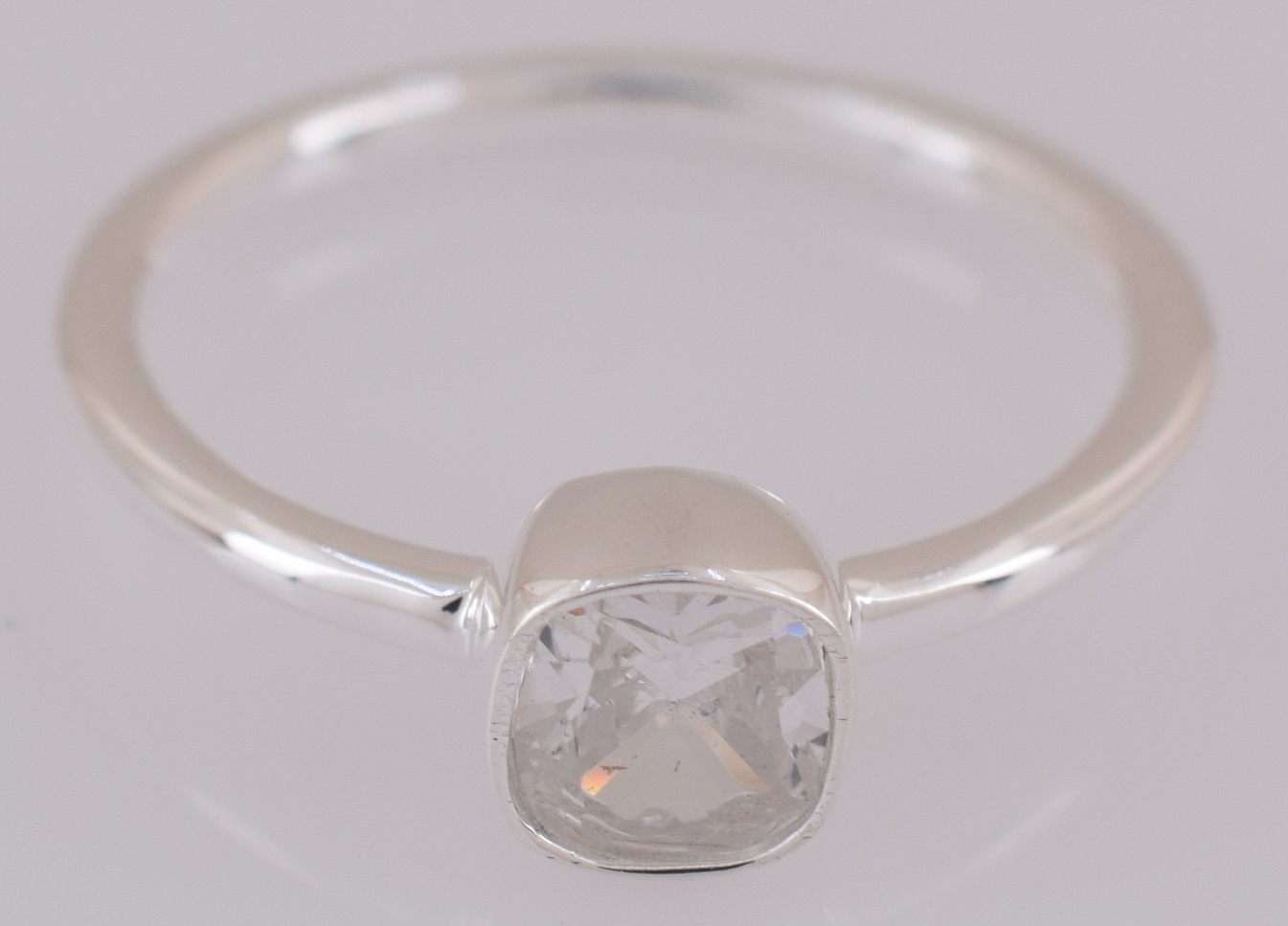 Crafted from 925 sterling silver with protective silver plating and we use 0.50 micron gold for gold plating, this elegant ring features a stunning 5mm cushion-cut white cubic zirconia that captures light beautifully. Weighing just 1.92 grams, it offers a comfortable fit without sacrificing presence. The cubic zirconia delivers diamond-like brilliance at an accessible price point, making it an ideal choice for everyday wear or special occasions. Perfect for those seeking timeless sophistication with exceptional clarity and sparkle.