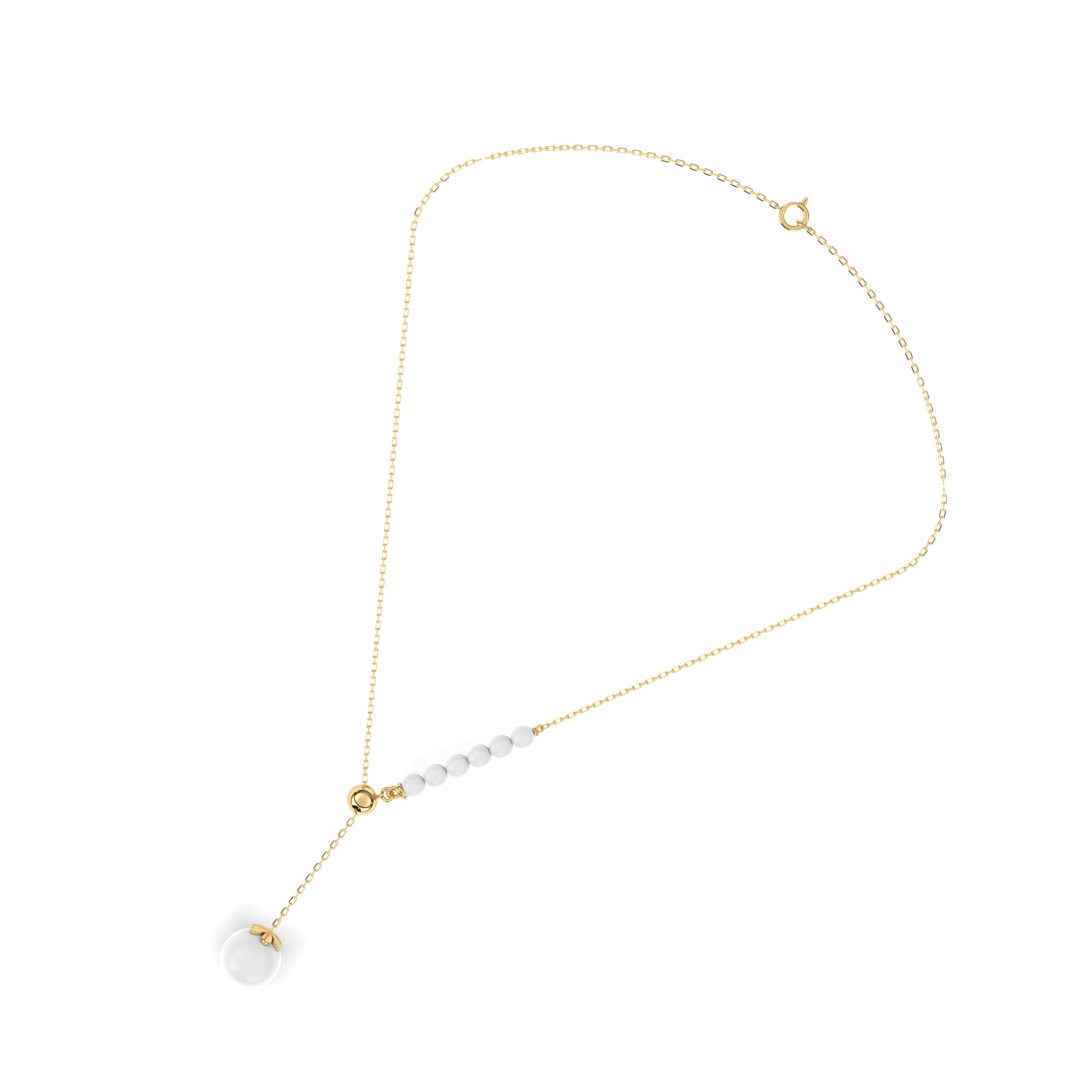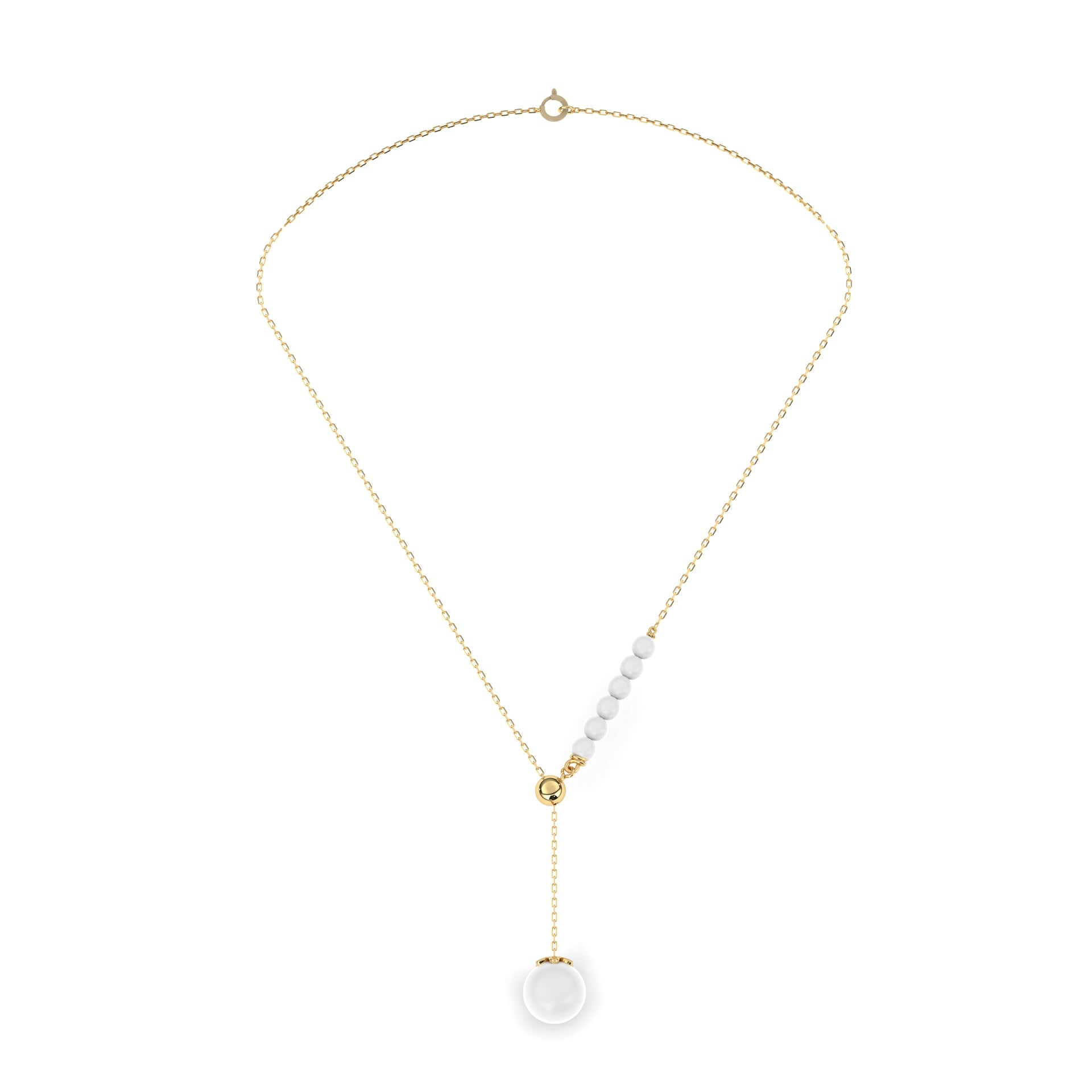 Featuring a perfectly round synthetic pearl suspended from 925 sterling silver with 0.25 micron gold plating, this necklace exemplifies refined minimalism. The round pearl's symmetrical form creates a harmonious focal point, while the gold-plated sterling silver chain provides a warm, lustrous backdrop. At just 2.43 grams, the lightweight design ensures comfortable extended wear without sacrificing visual impact. The synthetic pearl offers superior durability compared to natural alternatives, maintaining its radiant appearance through daily use. A versatile piece that transitions seamlessly from casual to formal settings.