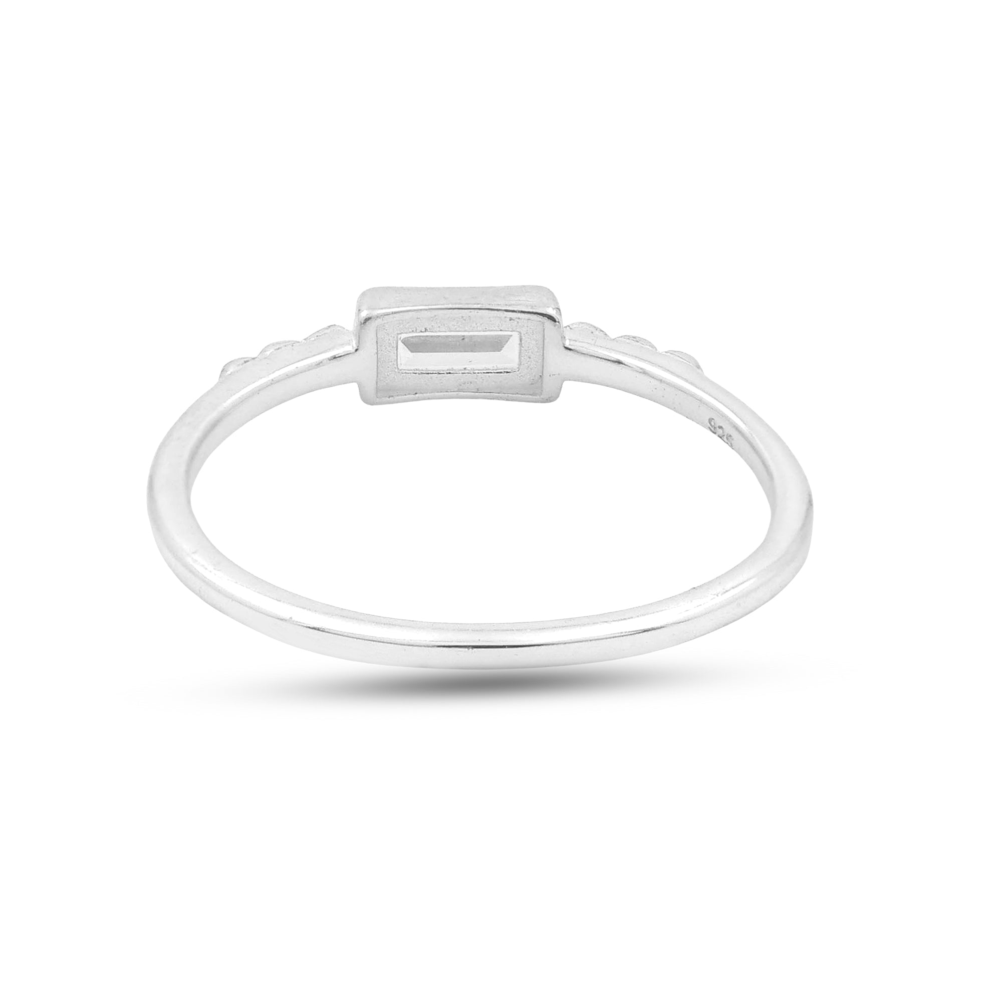 Experience contemporary sophistication with this refined ring, meticulously crafted from 925 sterling silver and enhanced with silver plating for enduring brilliance. The baguette-cut white cubic zirconia stone presents a modern geometric aesthetic while delivering exceptional sparkle and clarity. Weighing 1.313 grams, this piece offers substantial presence without excessive weight, ensuring comfortable all-day wear. The protective silver plating guards against tarnishing and maintains the metal's lustrous finish over time. A versatile design that seamlessly bridges minimalist and statement-making styles, perfect for both everyday elegance and special occasions.