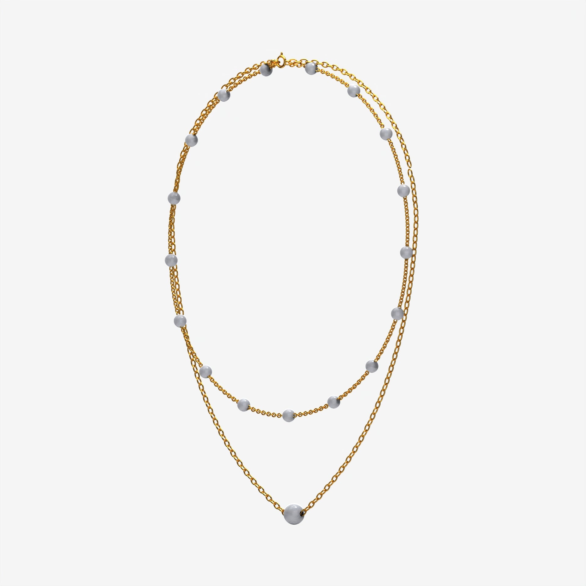 The Miri Sterling Silver Synthetic Pearl Necklace combines timeless elegance with contemporary craftsmanship. Crafted from 925 sterling silver and enhanced with a luxurious 0.25 micron gold plating, this piece delivers a sophisticated two-tone aesthetic. The necklace features carefully selected synthetic pearls in 8mm and 5mm sizes, creating visual depth and dimension. At just 12.3 grams, it offers substantial presence without excessive weight, making it ideal for extended wear. The precious metal composition ensures durability and longevity, while the gold-plated finish adds warmth and refinement to any ensemble. A versatile accessory that transitions seamlessly from everyday elegance to special occasions.