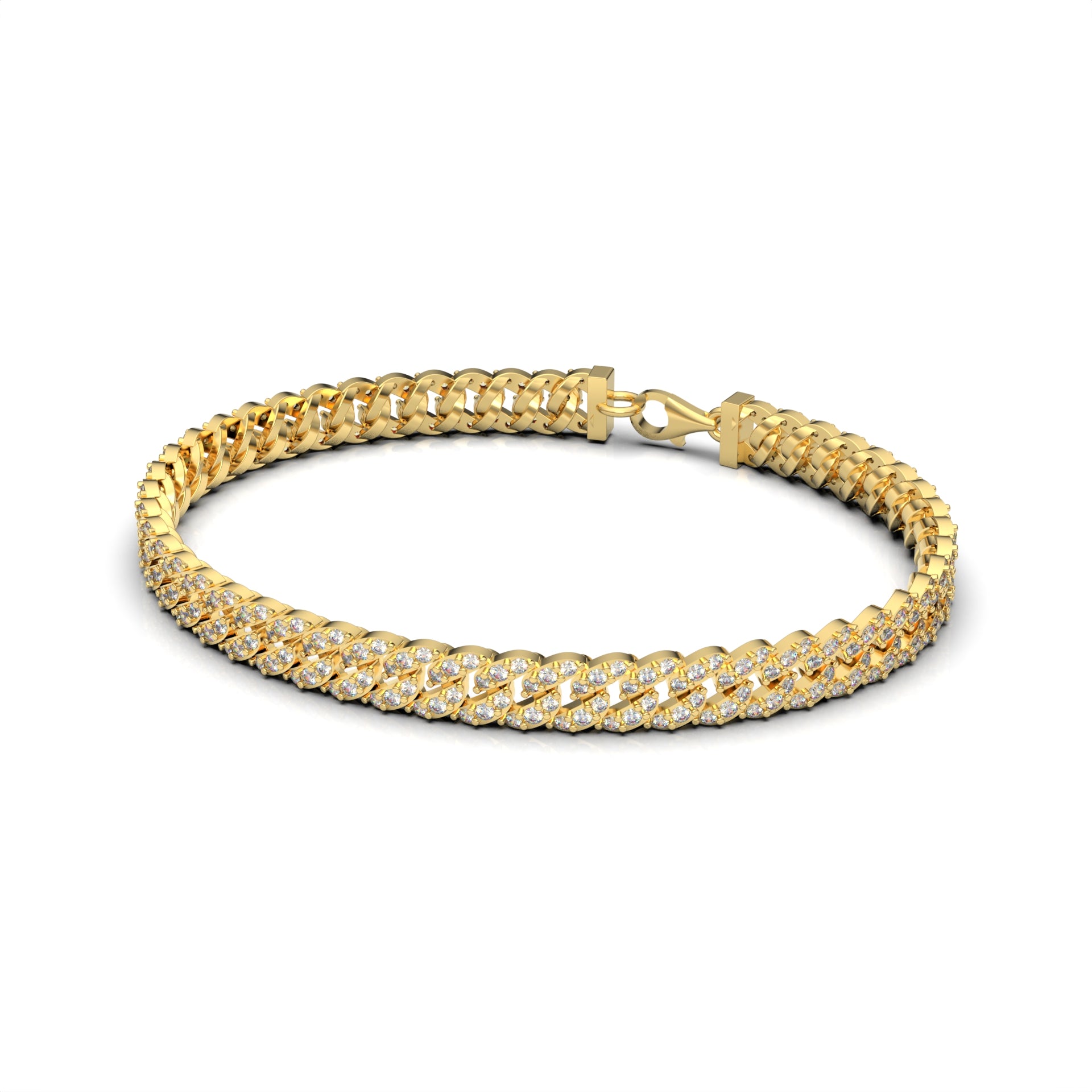 Crafted from 925 sterling silver and finished with a luxurious 0.25 micron gold plating, this elegant bracelet combines precious materials with refined design. Featuring brilliant round white cubic zirconia stones that catch light beautifully, it delivers sophisticated sparkle without the premium price tag of diamonds. Weighing just 7.3 grams, the piece offers comfortable everyday wear while maintaining substantial quality and presence. Perfect for those seeking timeless elegance with expert craftsmanship and durability.