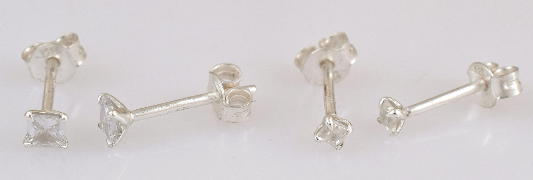 Expertly designed in 925 sterling silver with silver plating and we use 0.25 micron gold for gold plating, this earring set features precisely cut square white cubic zirconia stones in 3mm and 2mm dimensions for dimensional sparkle. At just 1.03 grams, the lightweight construction ensures comfortable wear throughout the day without sacrificing brilliance. The graduated stone sizes create visual depth and sophistication, while the cubic zirconia delivers diamond-like radiance at an accessible price point. An understated yet impactful choice for contemporary jewelry enthusiasts.