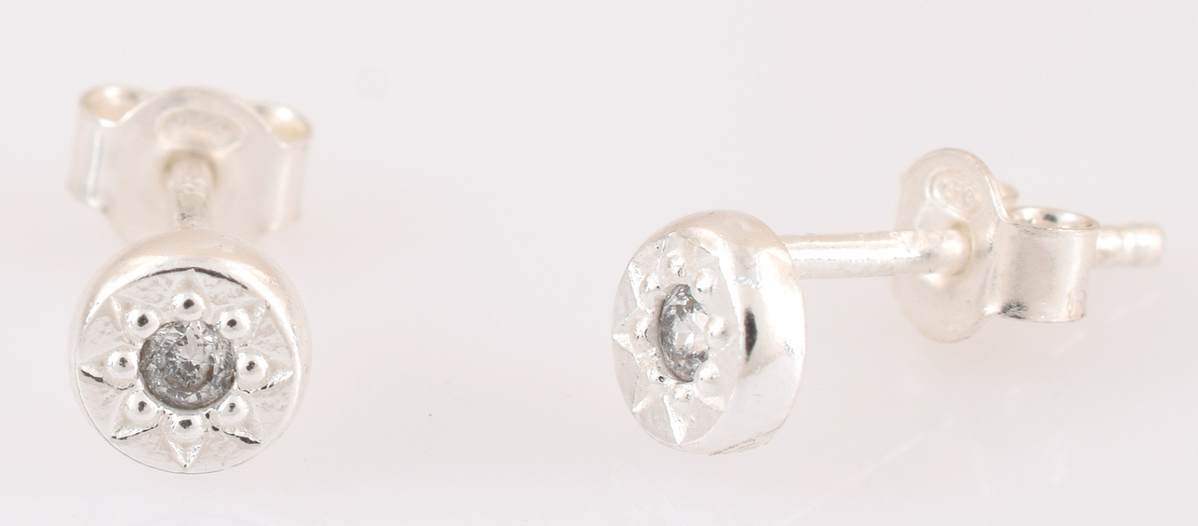 Zia Sterling Silver White Cubic Zirconia Stud Earrings showcase minimalist sophistication with genuine 925 sterling silver and silver plating and we use 0.25 micron gold for gold plating. Each stud features a precisely cut 2mm White Cubic Zirconia stone that delivers impressive brilliance in a refined, understated design. Weighing only 0.927 grams per pair, these lightweight earrings offer all-day comfort without compromising on presence. Ideal for those seeking classic elegance, they work beautifully as everyday staples or layered with other pieces for a curated look.